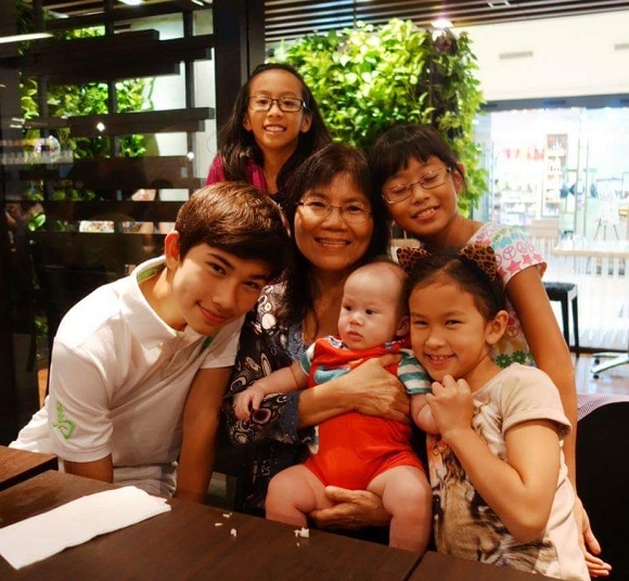 The writer with her grandchildren (clockwise from left) Max, Allie, Hana, Reiya and baby Ryder,…