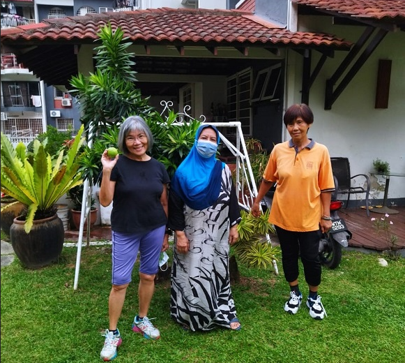 Fu (left) with Pn Hafsah and Mrs Lim, who often share their harvest of fruit…